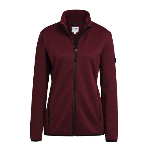 Il pile è da tempo uno dei materiali preferiti per l'abbigliamento outdoor, perché è in grado di regolare perfettamente il calore. Questa giacca in pile color bordeaux maculato con un morbido stemma a forma di motosega sul braccio è sicuramente gradita. Con cerniera al centro e ampie tasche con cerniera.