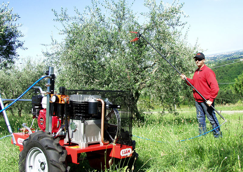 L'Abbacchiatore pneumatico Lisam V8 Titanium è un dispositivo all'avanguardia progettato per ottimizzare la raccolta delle olive. Con un impressionante numero di 2.000 battiti al minuto e un peso incredibilmente ridotto di soli 720 grammi, questo strumento garantisce un'elevata efficienza e facilità d'uso. Realizzato in titanio e magnesio, vanta una struttura leggera ma resistente, ideale per manovre precise e un utilizzo prolungato. Il design innovativo dei rastrelli a ventaglio consente di raccogliere anche le olive più piccole, muovendosi agilmente tra le fronde senza danneggiare la pianta.
